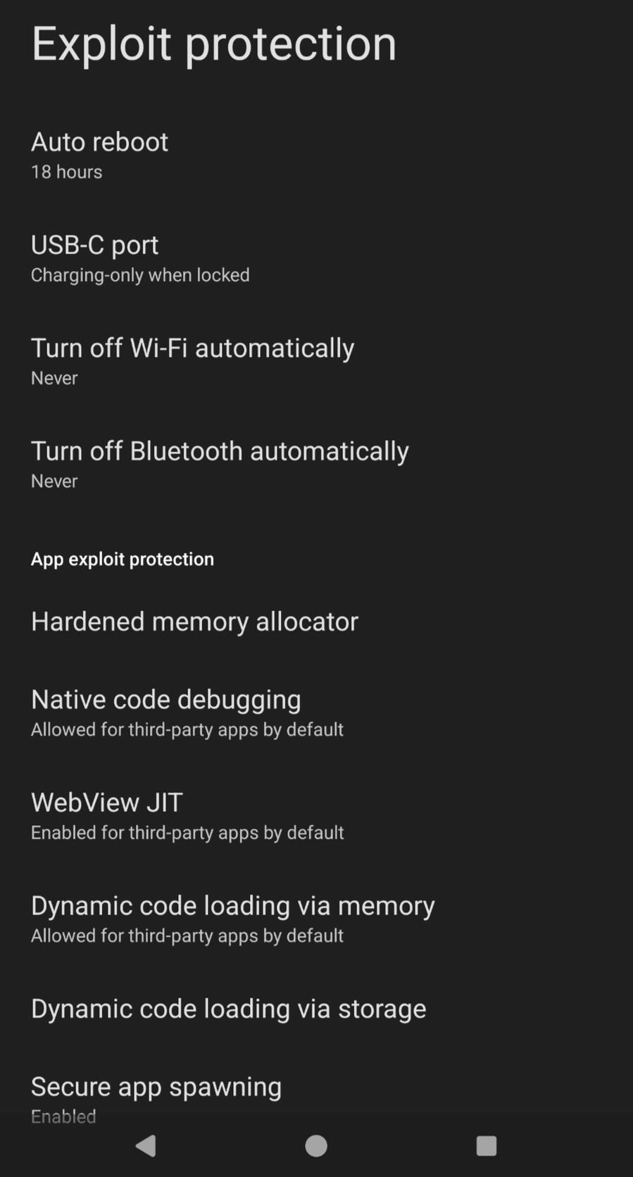There are lots of cool features built into GrapheneOS, like the option to use fingerprint-2FA and PIN scramblers for unlocking your phone, the clearing of sensitive data from memory, a hardened browser and multiple permission toggles to customize your network access, just to name a few.